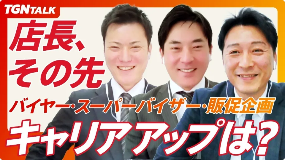 そんな疑問に、マネージャー・SV・バイヤーとして活躍する3名が本音で回答。店舗から始まったそれぞれのキャリアや、評価されるポイント、キャリアアップのコツ、そして仕事の「楽しさ」を語ります。